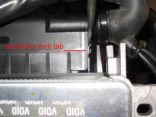 Now slide the outer cover off. When this cover comes off the two plates that lock each little connector into the multi pin connector can come out, although I’ve never actually seen the little connectors come out. You can also see in this photo the numbers denoting each pin number for the ECU.