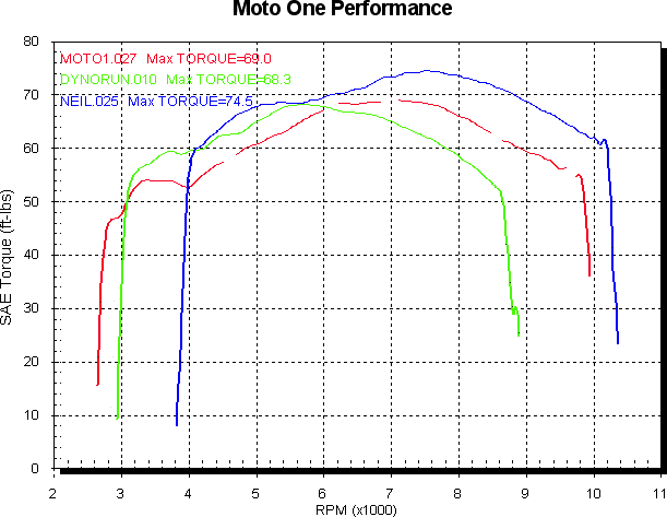The torque curves for the above graph show each engine’s character a littler better. The 1000SS ds (green) has lots down low then falls away  typical air flow limited engine. The ST3 has a very similar shaped curve that simply looks like it’s been moved to the right about 1,000 RPM. Maybe the top end is artificially restricted somewhat to stop it directly threatening the ST4S, but the lack of bottom end is a big odd. That doesn’t make a huge amount of sense to me, given the cam timing. Not that I’d complain. As delivered the ST3 has sensible gearing unlike the other two and is a very nice thing to ride in terms of low RPM smoothness and response  nail it and it just starts pulling and keeps going until the limiter. Riding all 3 back to back with the same gearing would be interesting, excessive wheelies not withstanding.