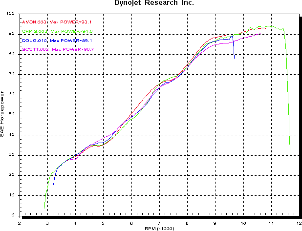 Dynograph courtesy of DYNOBIKE (03) 9553 0018 The next issue was working out where to put the cams. The trade off would be pulling up the midrange versus keeping the top end. The 94 Hp surprised me I must say, but then Id never dynod a 748 before. Given that the 851 only makes 93 I was a little jealous. Anyway, I checked how much piston to valve clearance I had to play with first up, and left a little margin for consistency between bikes if I get to do this again. The answer I got was somewhere near the settings I use for 996, so that was as good a starting point as any. I was just a little worried about whether I would lose any top end. I didnt really want to pull it apart again to try another setting, so I was hoping pretty hard.