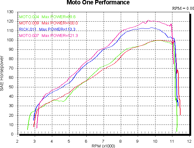 You can see how much the torque and power has picked up up to the torque peak at 8,200 RPM it’s between 23 and 30% better, as it should be given the 23.5% increase in capacity. The shape of the curve is very similar too, with the tuning peaks at the same RPM as before. Peak power is up only 13% (without any real tuning), but power isn’t related to capacity as much as airflow, and we didn’t really make any airflow mods (porting, bigger valves, etc) to it. It may make some more power with tuning (which is to come) and I’m sure retarding the inlet cams would help too if we were chasing a dyno number, but that’s somewhat academic given it’s a road bike. I’m sure part of the reason the 999 is not further ahead in the midrange is the difference in inlet cam settings. How the 999 would work with 106 degree inlet centrelines would be interesting as it has 3mm bigger valves again than the 749. Adding a full system as compared to the Termi asymmetric kit would help the top end power too, as it does for any model in the 749/999 range. On the road the difference is skewed somewhat by the fact the 999 as std runs 15/36 gearing and the 749 runs 14/39, both with the close ratio gearbox. With this shorter gearing the 924 really moves. It may even benefit from longer gearing to tone it down a bit. Home | Blog | Facebook | Service Enquiry | Products | Reports | The Dyno | Disclaimer | Contact Us |