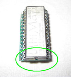 P7 and P8 For the P7 and P8 ECU fitted to some Ducati and Moto Guzzi models (also Laverda 668) you remove the bottom cover as below and the eprom can be seen, highlighted here by the red circle. Removal is straight forward, as I’ve never seen a P7 or P8 with any sort of eprom cap or cover. Using an eprom puller under each end of the eprom simply pull up gently to remove it. Many people like to use anti static mats and the like when removing/fitting eproms to stop static electricity from damaging the eprom. Personally I never do and have never had a problem. But if it concerns you, go to an electrical supplies shop and fit yourself out. If any of this eprom swapping daunts you, get someone who has done it before to do it for you. The socket the eprom goes into has a wide indentation at one end as circled below in blue. The notch in the eprom (circled in green) needs to go to this end. Put it in the wrong way and it will either not work properly (runs the pump continuously) or blow the eprom up. When they blow up they give a little flash then nothing. Yes, I’ve done it. For the 1.6M ECU you remove the round rubber plug under the “Do not remove” sticker and the eprom is directly under that, as per the photo below. Being very careful remove the grey blobs of silicone (the greatest goop ever) from either end of the eprom and its little white plastic clip on cover. It’s common to lose them inside the ECU case just hold it upside down and roll them out as required. Then using a small blade and extreme care (usually the amount of care is inversely proportional to the number of times you’ve done it) pry the tangs of the white plastic clip on cover sideways out from under the eprom socket base and remove the white cover. You might have to go fishing for this too. This exposes the eprom. Using an eprom puller under each end of the eprom remove it as well. Many people like to use anti static mats and the like when removing/fitting eproms to stop static electricity from damaging the eprom. Personally I never do and have never had a problem. If it concerns you, go to an electrical supplies shop and fit yourself out. If any of this eprom swapping daunts you, get someone who has done it before to do it for you. You’ll also notice that the socket that the eprom sits on and the pins go into has a notch at one end. The eprom also has a notch, usually hidden under the grey goop. This is the locating notch, and the new eprom needs to be fitted with its notch (circled in green) at the same end. Put it in the wrong way and it will not work properly (runs the pump continuously).