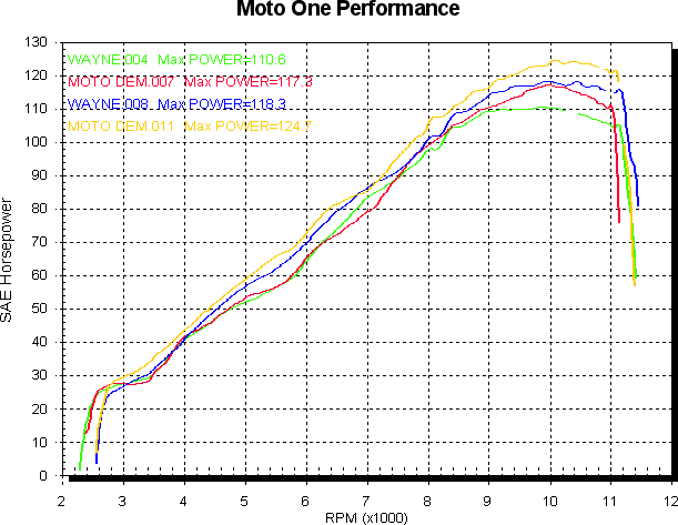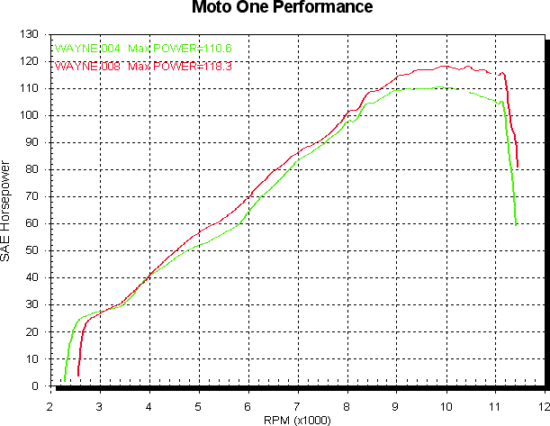 The owner had been riding this bike before the first service with the Akrapovic slip ons fitted, but otherwise std airbox inlet restrictor fitted, std air filter and ECU map variant 1. He felt there was quite a noticeable increase in performance and rideability with the above mods, always a good thing. Home | Blog | Facebook | Service Enquiry | Products | Reports | The Dyno | Disclaimer | Contact Us |